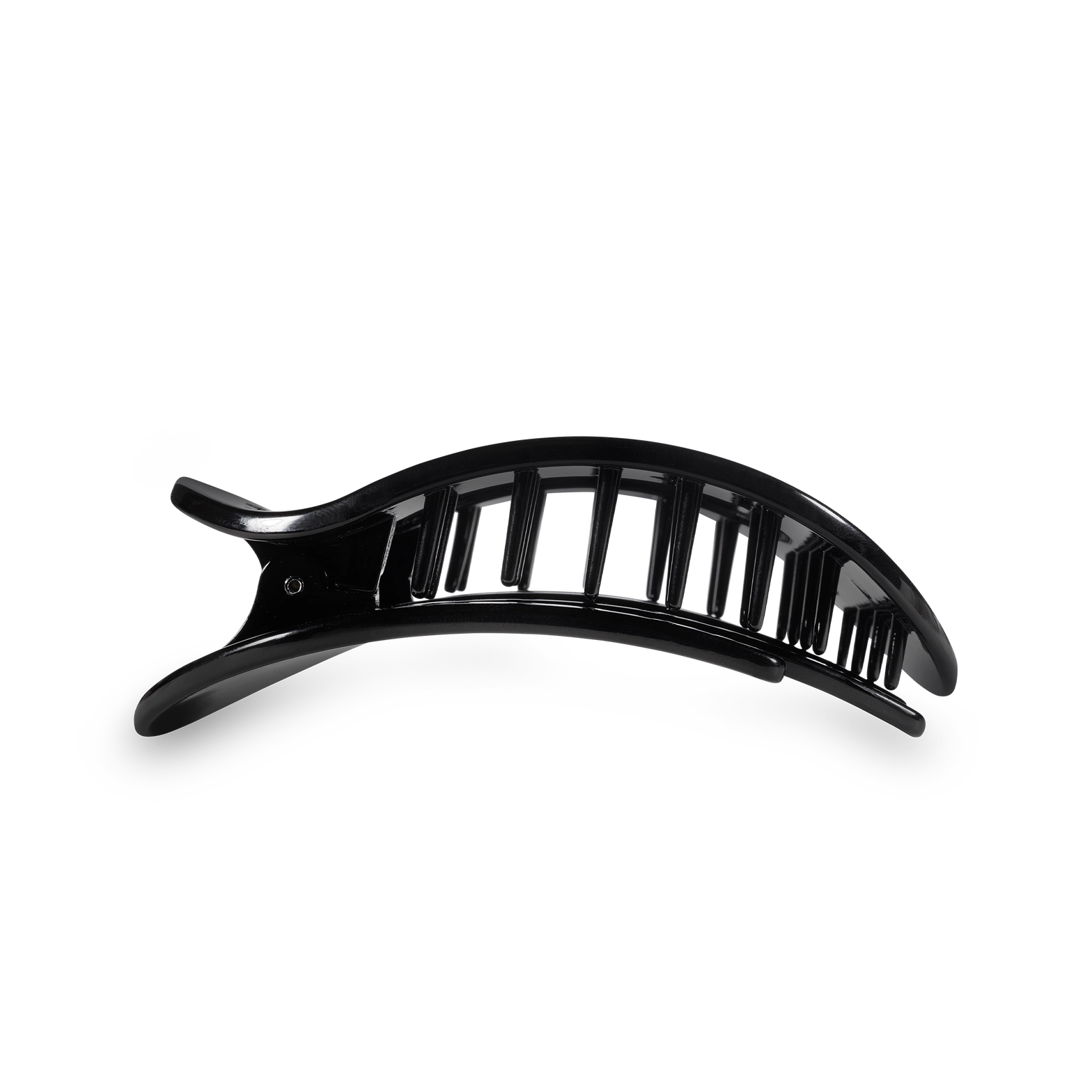 Lay flat and relax with the new TELETIES Jet Black Medium Flat Round Hair Clip in Black. This hair clip is designed to allow you to lay back flat, do yoga, or sit comfortably in a seat with a headrest, and it is made with the same material that is nearly unbreakable.