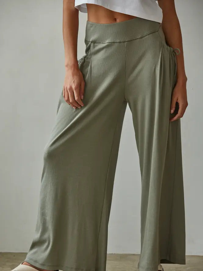 Knit Cotton Modal Spandex Wide Leg Pants in Olive