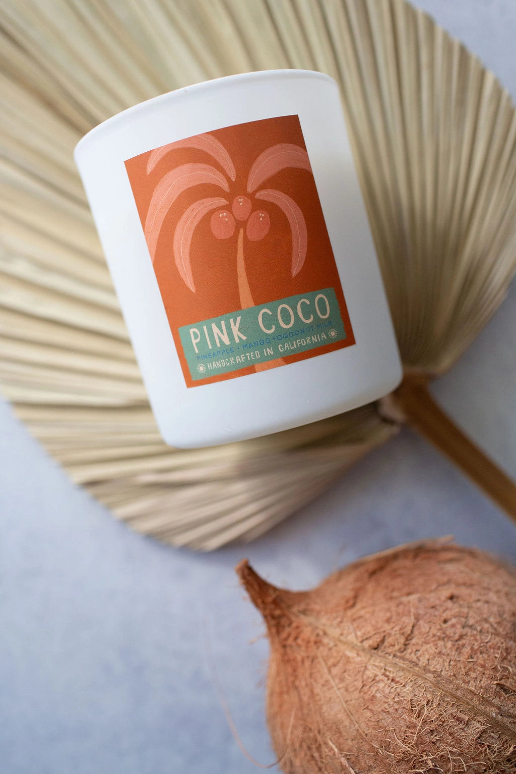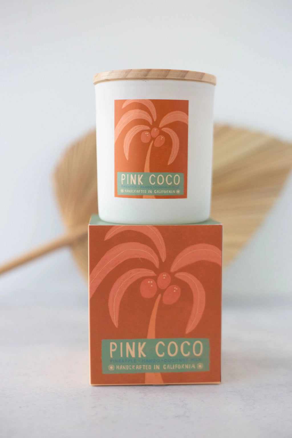 A nostalgic nod to endless summers and golden coastlines, this collection brings the carefree spirit of vintage California home. Playful and flirty, Pink Coco captures the essence of tropical travel. Notes of ripe mango and creamy coconut milk evoke palms swaying, sun-soaked locks & toes tucked into warm island sands. Hand-poured with coco soy wax, premium oils, and lead-free cotton wicks, each candle comes with a natural bamboo lid and is presented in a matte white glass jar, thoughtfully packaged in an artfully designed box -- perfect for gifting and ready to bring a little sunlit California charm into any space.
