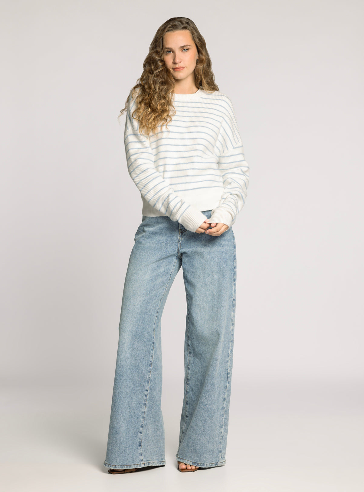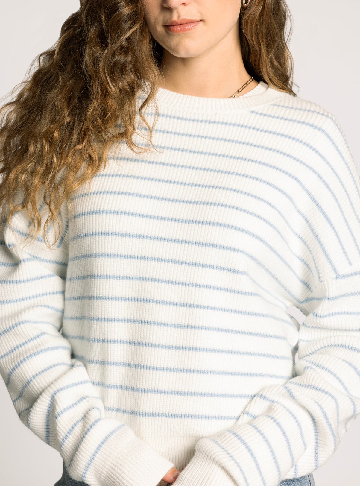 The Ely Sweater in Ivory Powder Blue
